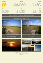 - Aktuelle Landerichtung, Landebahn, Tankstelle, Info Frequenz, SR, SS, Wind.